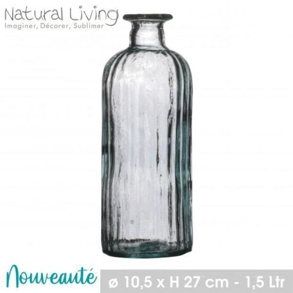 Florero de cristal 100% reciclado. Medidas de 15 x 15 x 23 cm.