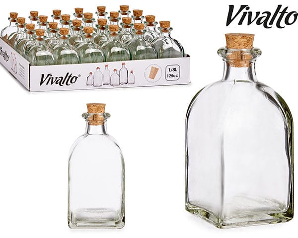 Frasca de cristal de 125 ml de capacidad y tapón de corcho. Dimensiones del Producto: 5 x 5 x 10 cm.