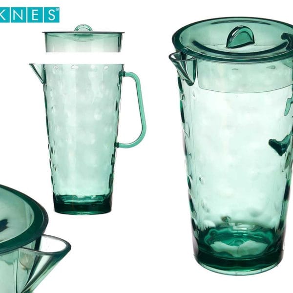 Jarra de plástico con tapa con diseño de puntos en color verde. 2000 ml. Dimensiones del Producto: 14,1 x 19,7 x 26,5 cm.