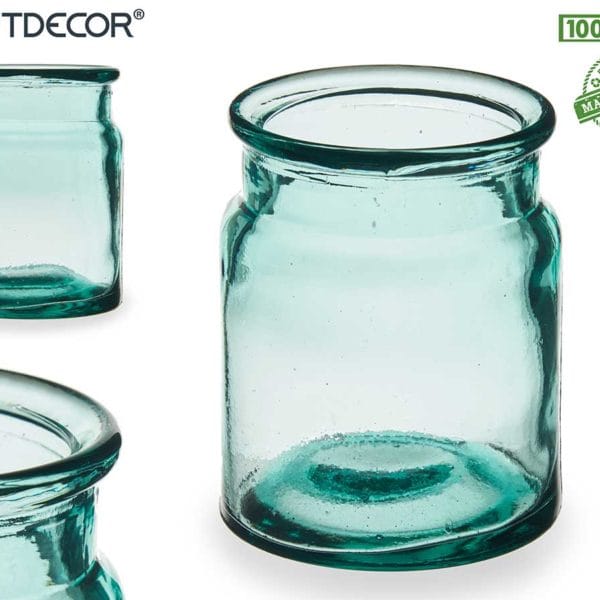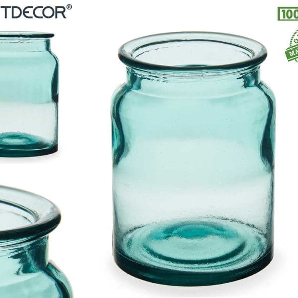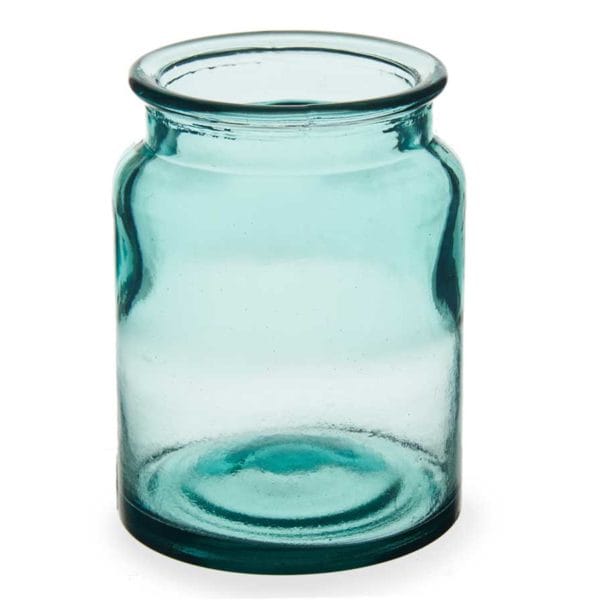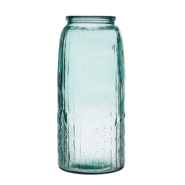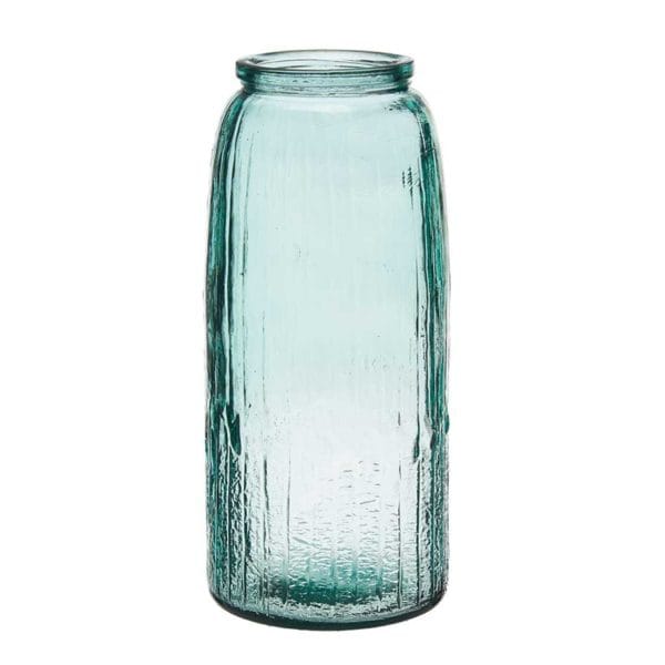 Jarrón de cristal cilindro de 17 cm, diámetro x 30 cm, color turquesa. 1 unidad.