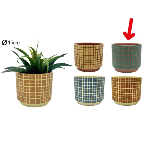 MACETA VERDE CUADRADOS 14X16