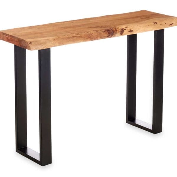 Mesa y 2 sillas con base y respaldo de madera y patas negras metálicas. Todos los componentes son plegables, de manera que pueden guardarse fácilmente ocupando muy poco espacio.