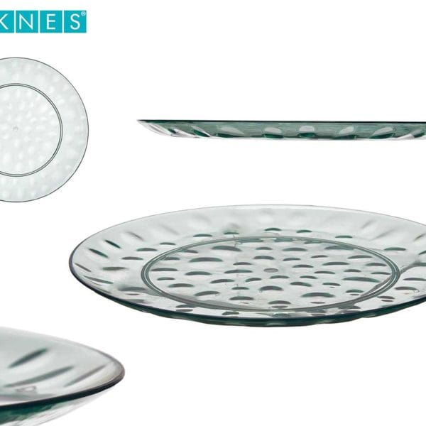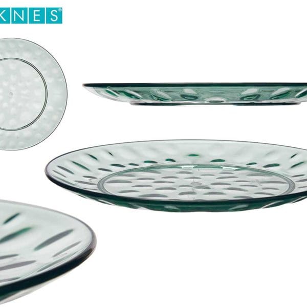 Plato llano de plástico con diseño de puntos en color verde. 30 cm. Dimensiones del Producto: 29,9 x 29,9 x 1,7 cm.