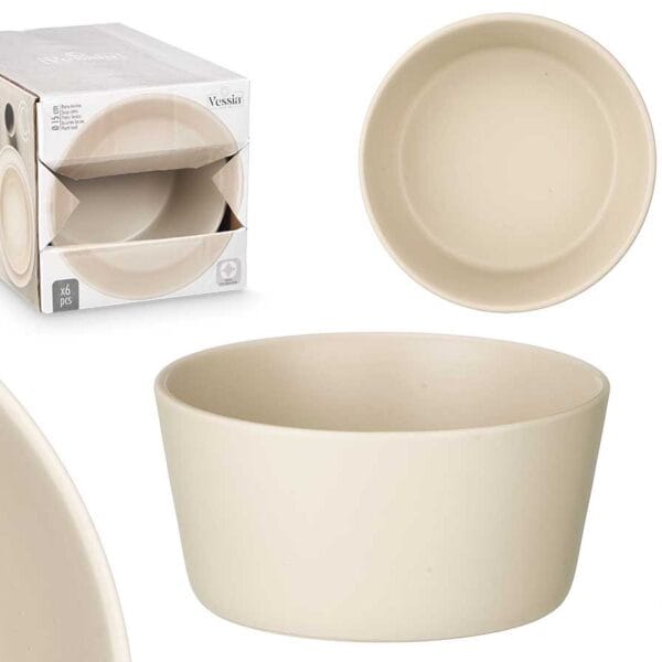 Plato hondo de 15 cm liso en color beige. Dimensiones del Producto: 15 x 15 x 7,2 cm.