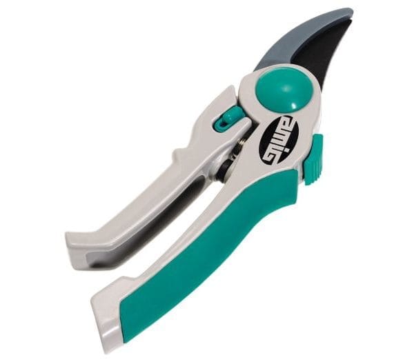 Tijera de podar de mango de aluminio con hoja recubierta de teflón. Apertura regulable.