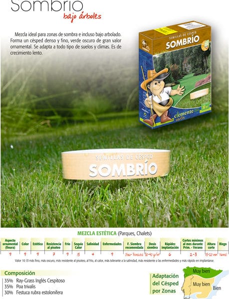 Mezcla perfectamente equilibrada de gramíneas y trébol enano, formando un césped muy tupido y de poco mantenimiento. No requiere de abonado nitrogenado. Ideal también para formar una cubierta verde en zonas de pendientes o taludes, ya que asentará la tierra con la gran cantidad de raices que genera.