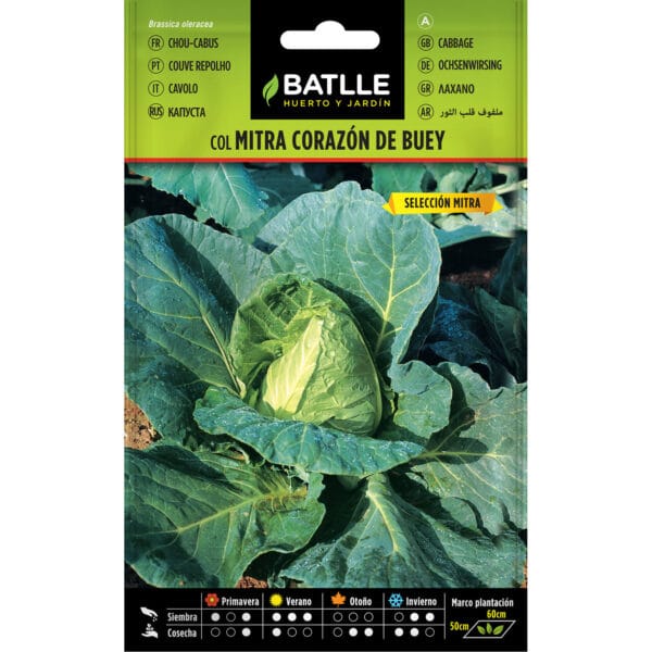 Repollo voluminoso de forma cónica, compacto, rústico y de gran rendimiento.