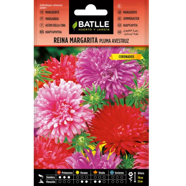 Planta anual de 65 cm. de altura. Flores de colores bonitos en forma de margarita. Utilización: En macizos altos, centros de los jardines y flor cortada