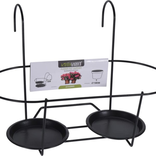 Set de 3 maceteros con soporte metálico en color gris.