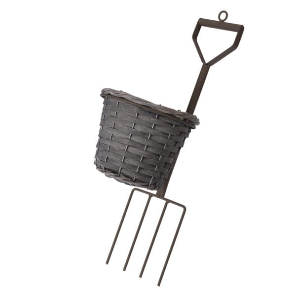 Porta maceta con diseño de pala en color gris. Medidas 22 x 48 cm. Maceta incluida.