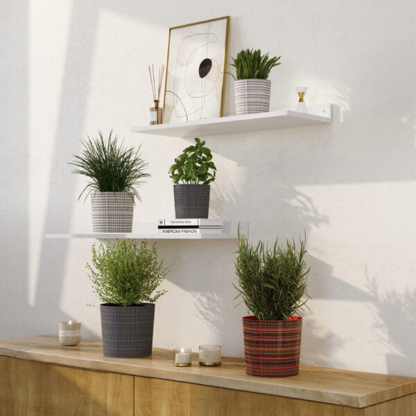 Esbelta y robusta, la cache-pot Kama es una tapa de forma cilíndrica caracterizada por una textura especial, caracterizado por el uso de una película con diferentes colores y textura geométrica.