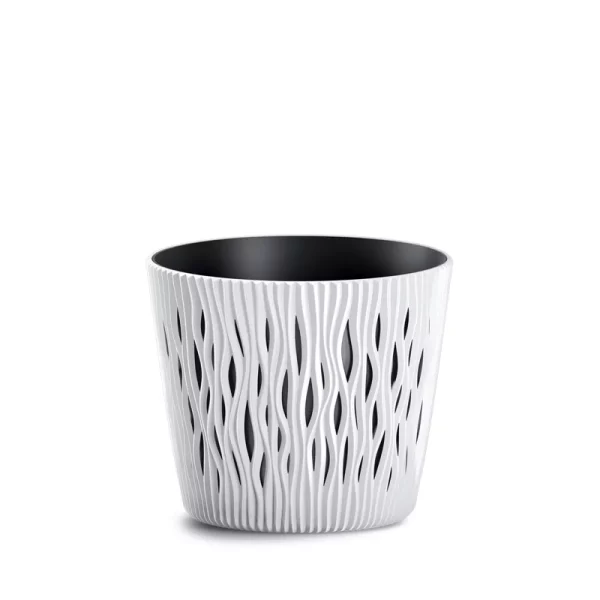 Macetas con diseño rugoso en color blanco de 25 cm. 1 unidad.