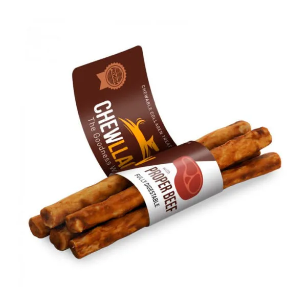 Chewllagen Rollos de Colágeno y Ternera 12,5cm (5 unidades) es un snack natural diseñado para brindar satisfacción y felicidad a tu perro.