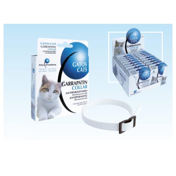Garrapatin collar para gatos. Control de las parasitosis externas de gatos (infestaciones por pulgas y garrapatas) y como repelente de mosquitos e insectos voladores transmisores de enfermedades, dando protección durante 3 meses.