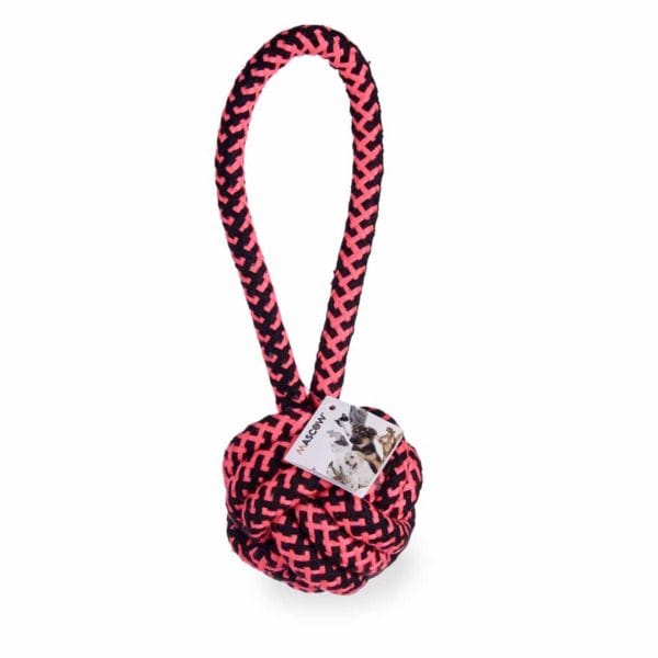 Mordedor con bola corto, color rosa. Dimensiones del Producto: 9 x 9 x 25 cm.