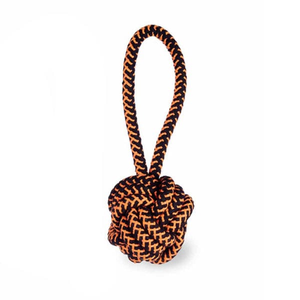 Mordedor con bola corto, color naranja. Dimensiones del Producto: 9 x 9 x 25 cm.