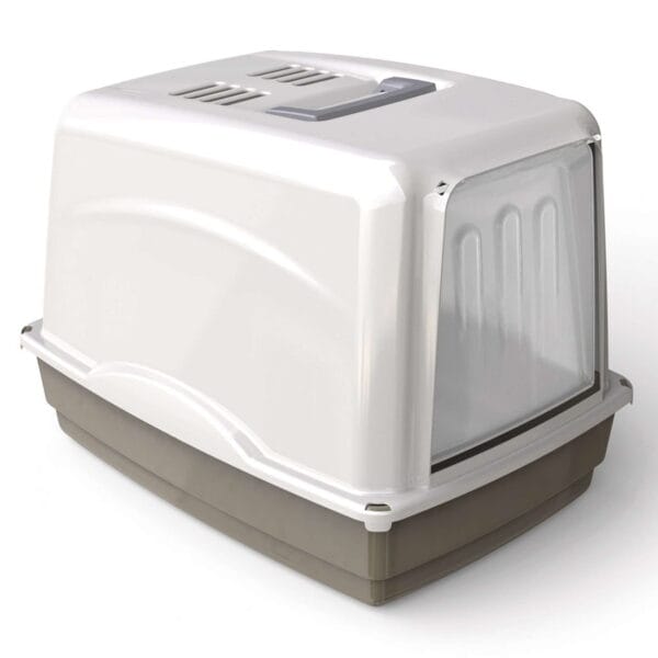 Las gateras Vicky están compuestas de dos partes para facilitar la limpieza y desinfección de esta, además cuenta con un filtro superior donde un filtro de carbón elimina los malos olores y su puerta abatible facilita la entrada del gato a su interior.