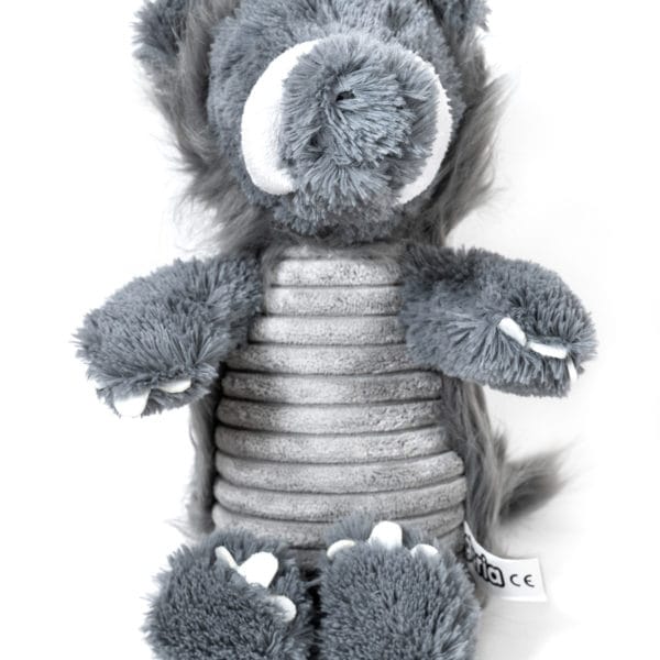 Con cinta de nylon y largo regulable, mosquetón de seguridad y enganche universal al cinturón de seguridad de cualquier vehículo (excepto para algunos modelos de la marca Volvo).