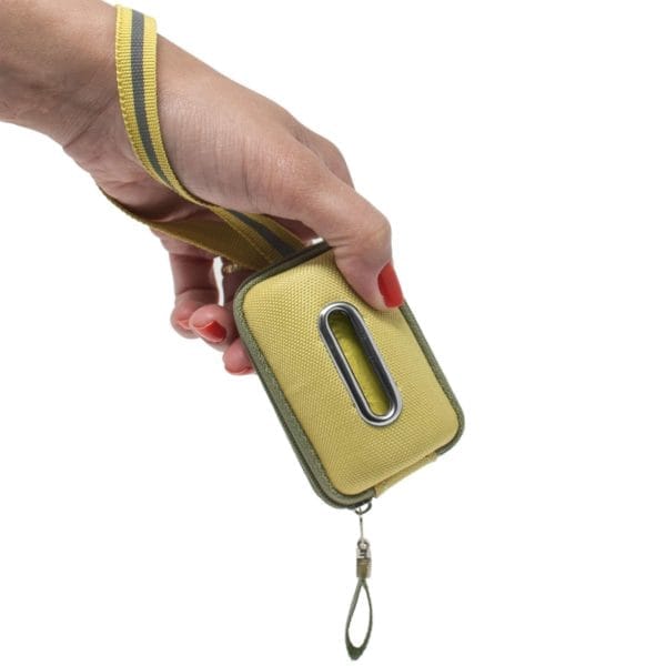 Elegante dispensador de bolsas sanitarias en tela. Está fabricado con materiales de alta calidad.