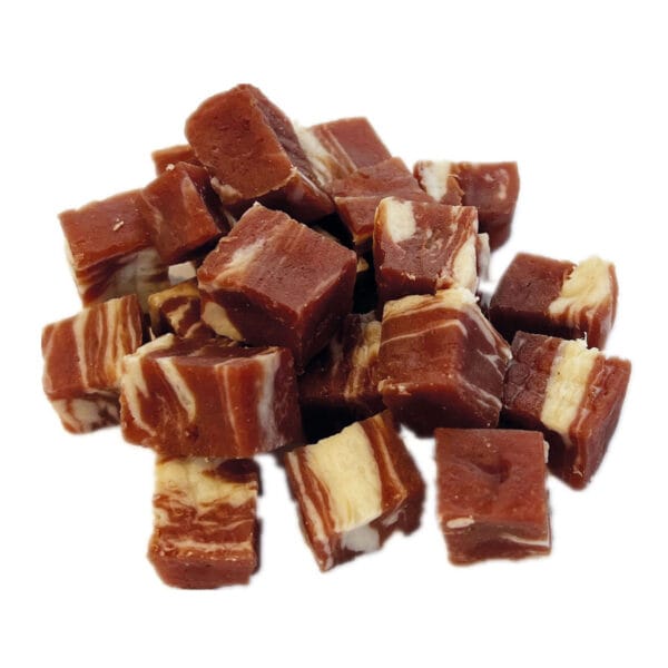 Crujientes dados de piel de bacalao NutraDog, 100% natural, sin colorantes artificiales y sin cereales, textura firme para que tu mascota muerda y mastique durante mucho más tiempo. Un delicioso snack en bolsas con cierre zip para mantenerlas frescas durante mucho más tiempo.