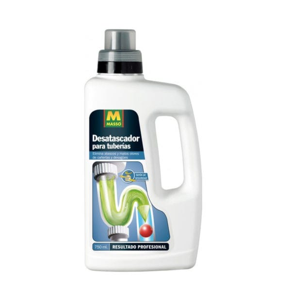 Desatascador para tuberías Elimina atascos y malos olores de cañerías y desagües Resultado profesional El Desatascador Massó elimina de forma eficaz, fácil y rápida los atascos más resistentes (celulosa, grasa, comida, cabellos, etc...) y los malos olores de cañerías y desagües (cocinas, baños, WC, duchas, etc...). Es un producto seguro y altamente eficaz. Está listo para usar, tanto en frío como en caliente, no hay que diluirlo en agua. No hace espuma y no deteriora ni ataca las tuberías. Su uso mensual previene la formación de atascos y la aparición de malos olores. Con tapón de seguridad. Composición: contiene hidróxido sódico