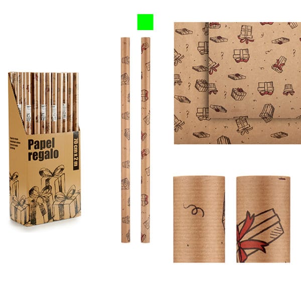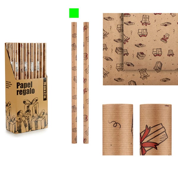 Papel de kraft, medidas 70 cm x 2 m. modelo regalos sin color. 1 unidad.