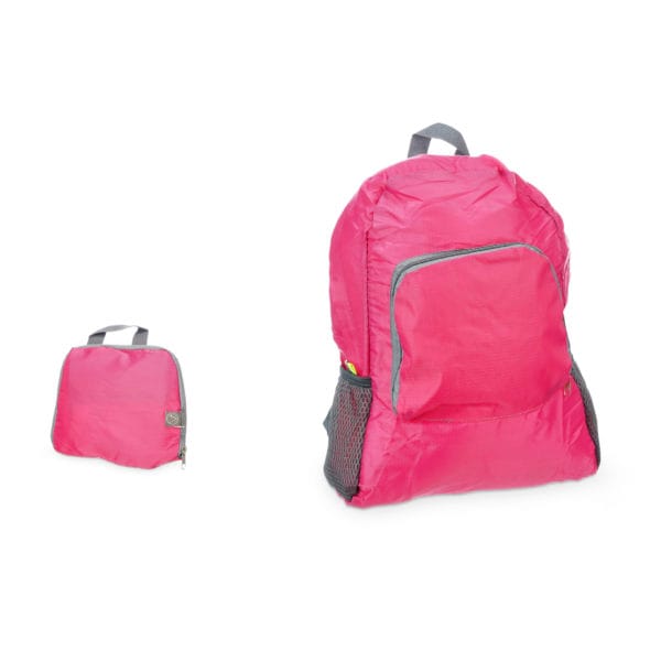Mochila plegable ligera color rosa. Dimensiones del Producto: 22 x 20 x 5 cm.