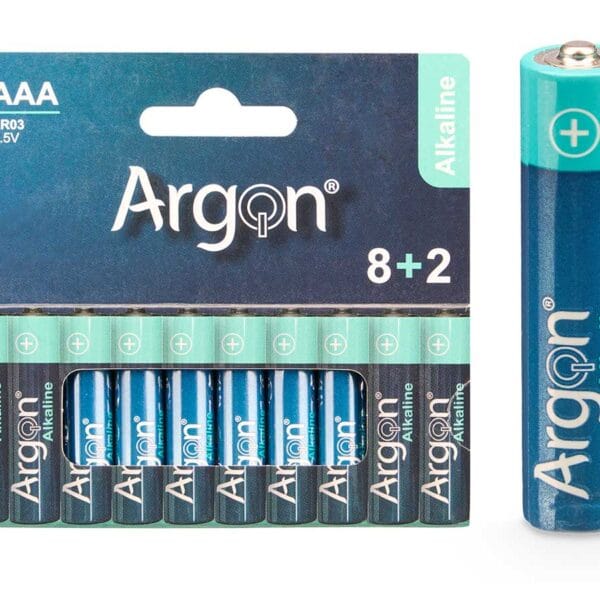 Pila alkalina argón lr03 aaa pack 10 Dimensiones del Producto: 1,2 x 10,7 x 10,1 cm. Unidades por caja: 30 Material: Pila alcalina Colores: Azul Duración: 5 años Detalles: 1.5V + 0% Mercurio + 0% Cadmio