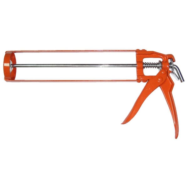 Pistola de silicona 9" en aluminio. Ligera, resistente y perfecta para aplicar silicona y masillas con precisión en trabajos de bricolaje y reparación.