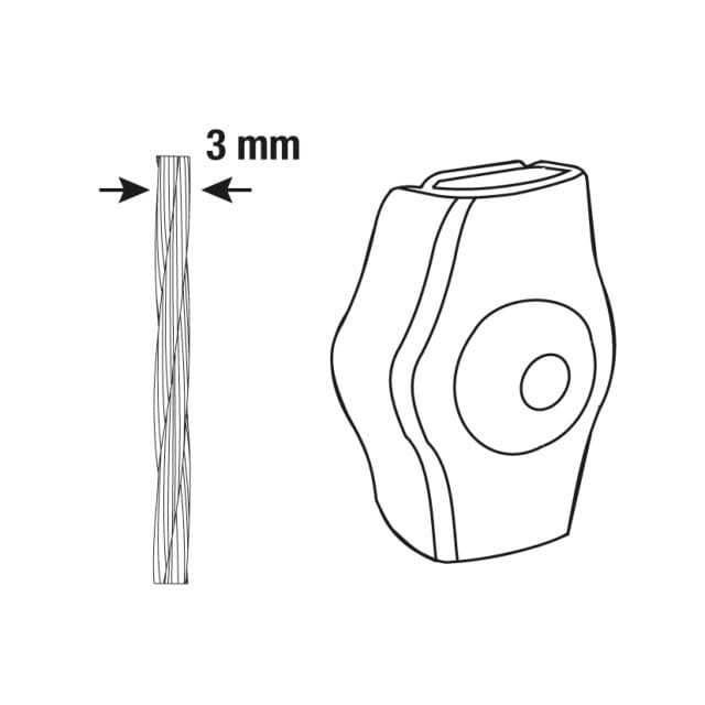 Su diseño compacto y resistente permite una instalación rápida y firme, evitando deslizamientos y asegurando la integridad del cable. Es ideal para tensado de cables, montaje de cercas, sujeción de toldos y aplicaciones de bricolaje.