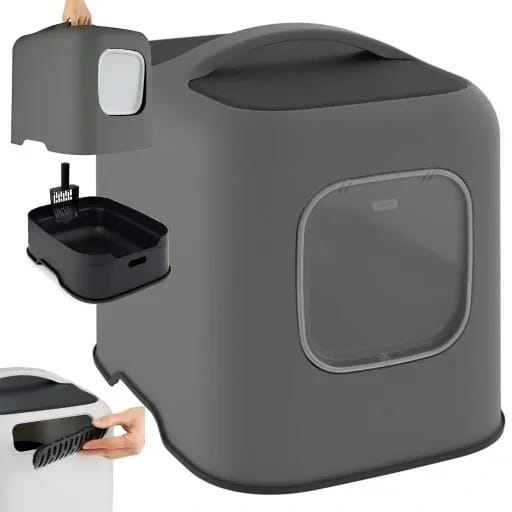 Brinda a tu gato la privacidad y comodidad que se merece con este arenero cerrado, diseñado para mantener la limpieza y armonía en tu hogar. Fabricado con material reciclado y reciclable, este producto no solo cuida el bienestar de tu mascota, sino también el del planeta. Su diseño innovador y funcional lo convierte en una opción ideal para cualquier dueño de gato que busque practicidad y estilo.