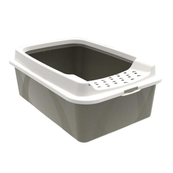 Moderno arenero para gatos de Rotho con entrada desde arriba. Gracias a la gran apertura de entrada, también es adecuado para razas de gatos grandes.