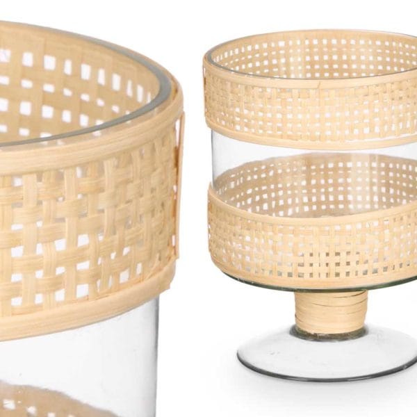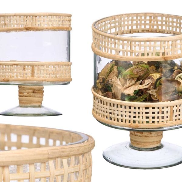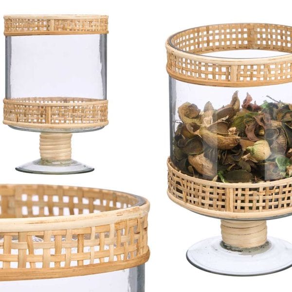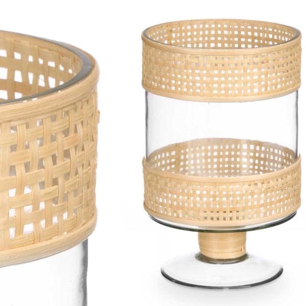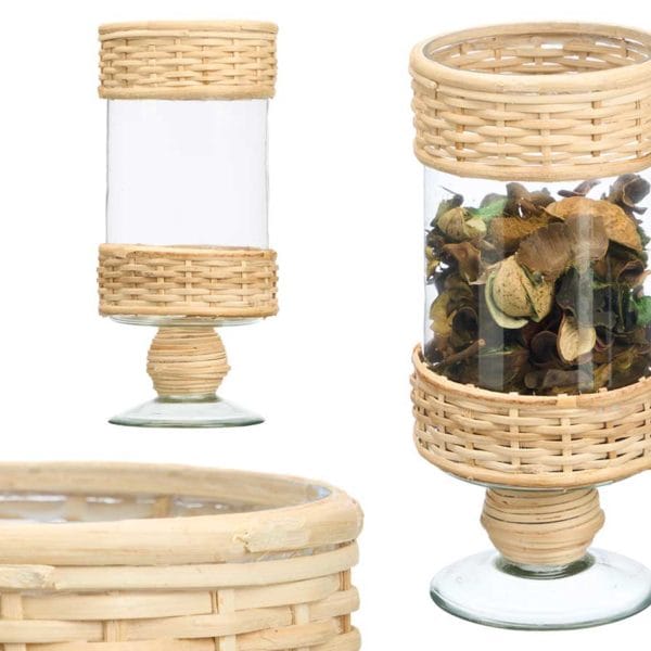 Botella de Vidrio y Ratán 16x16x27 cm – Estilo Natural y Elegancia Artesanal para tu Decoración