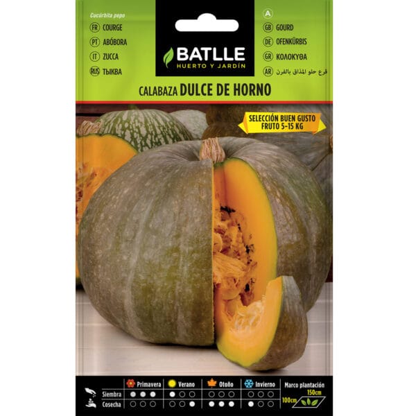 Esta calabaza forma frutos redondeados y ligeramente aplanados, de color naranja intenso y carne firme, que la hacen muy adecuada para preparar purés, cremas, asados o repostería. Además, su tamaño imponente y su forma regular la convierten en una opción perfecta para decoración rústica o artesanal.
