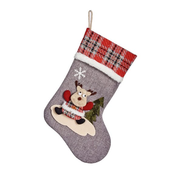 El calcetín decorativo gris con figura de muñeco de nieve es un complemento perfecto para la decoración navideña en hogares, oficinas y comercios. Con un diseño atractivo y festivo, permite llenar su interior con pequeños regalos, caramelos o detalles para sorprender a familiares y amigos durante la temporada navideña.