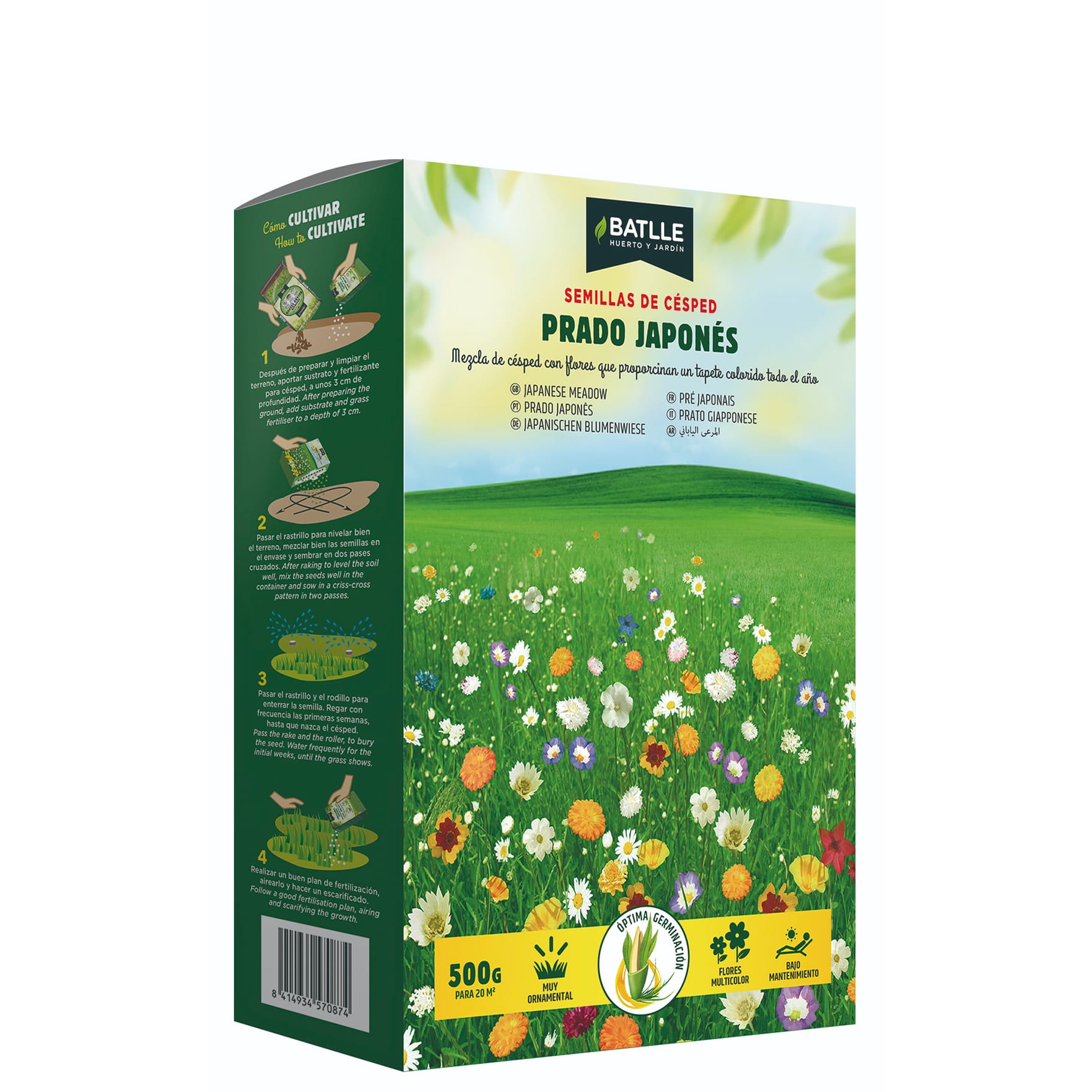 Semillas Prado Japonés BATLLE – Caja 500 g | Césped con flores de colores para un jardín efecto pradera natural