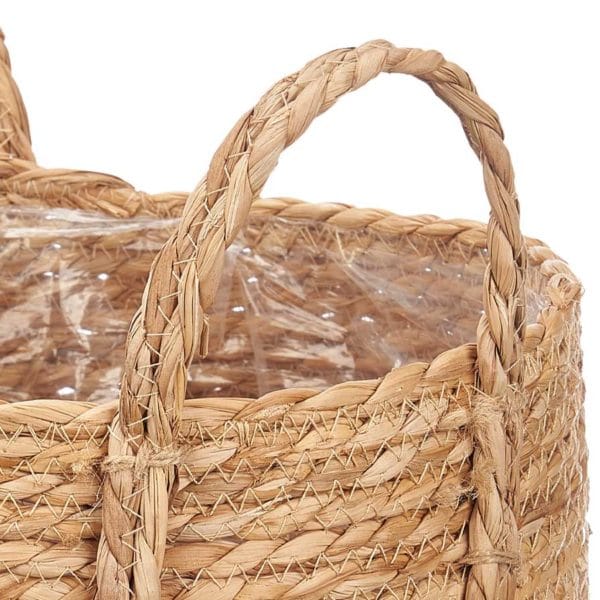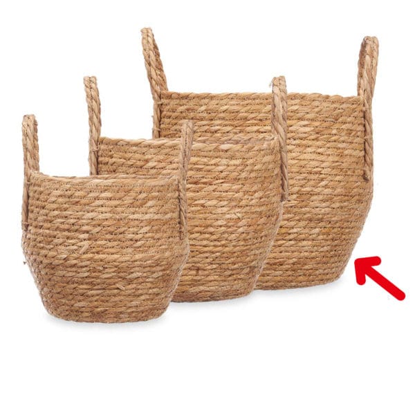 Su diseño abombado proporciona mayor capacidad de almacenaje, mientras que el asa integrada facilita el transporte. Es ideal para guardar ropa, accesorios, mantas ligeras, juguetes o incluso para utilizar como macetero decorativo. Su estética rústica y natural lo convierte en un complemento perfecto para salones, dormitorios o terrazas interiores.