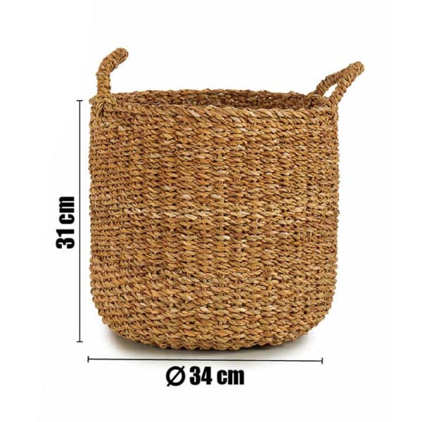 Con su tamaño pequeño (30 x 30 x 28 cm), es perfecto para almacenar textiles, juguetes, accesorios o plantas decorativas, aportando un toque natural y acogedor. Ideal para quienes buscan organización sostenible y estética artesanal en su hogar.