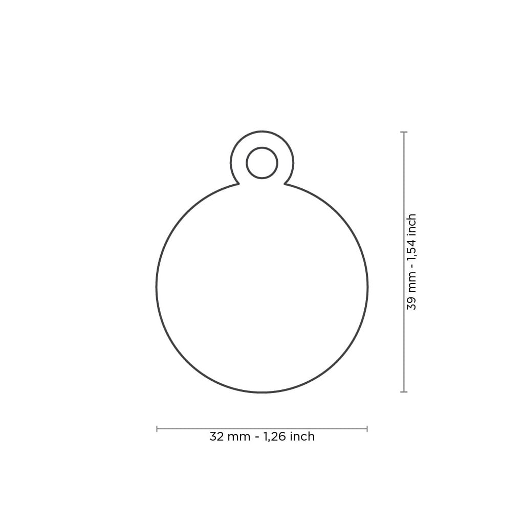 La Placa Basic Círculo Grande en latón cromado es una chapa identificativa ligera y resistente, ideal para mascotas pequeñas.