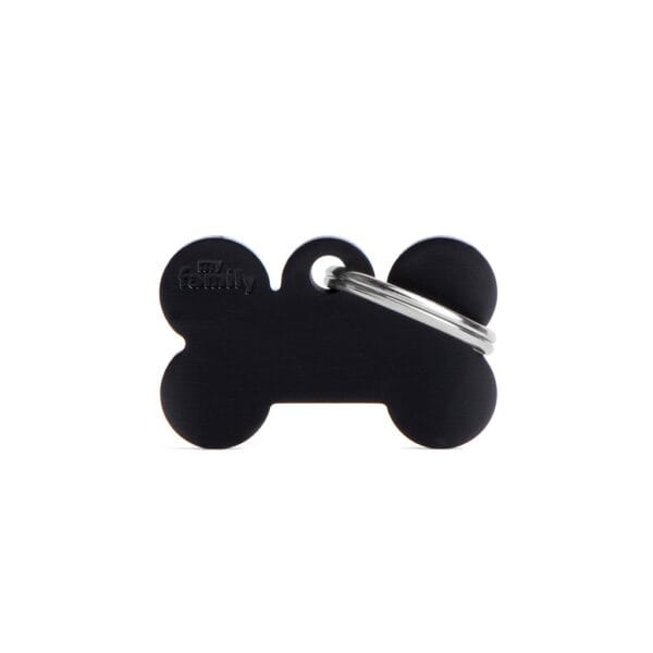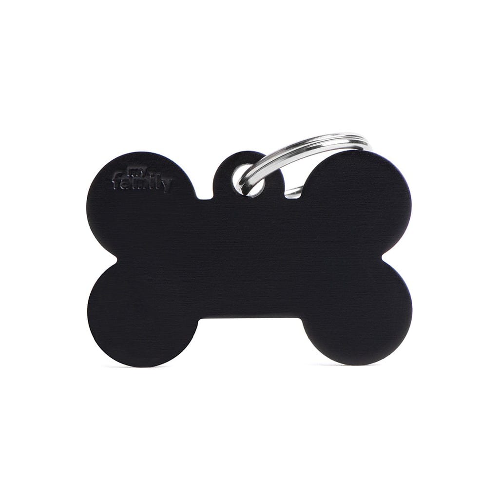 Perteneciente a la colección BASIC de MyFamily, esta placa representa la esencia del diseño clásico llevado a su máxima expresión. Su forma de hueso y su intenso color negro la convierten en una opción visible, reconocible y atemporal, perfecta para perros de tamaño medio o grande.