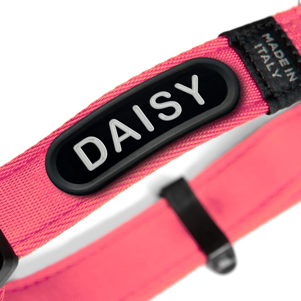 Además, incluye una placa integrada personalizable donde puedes grabar el nombre de tu perro, junto con un práctico portaetiquetas para añadir su medalla identificativa.
