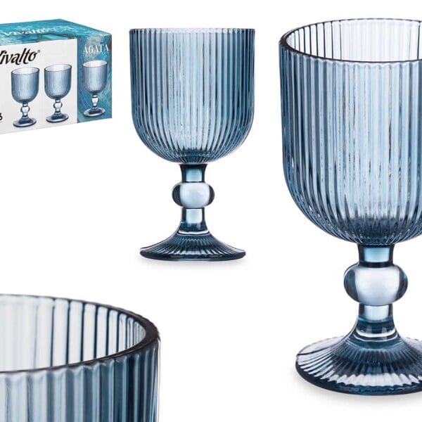 🍷 Copa Azul Oscuro con Rayas – Elegancia y Estilo en Vidrio | Capacidad de 370 ml