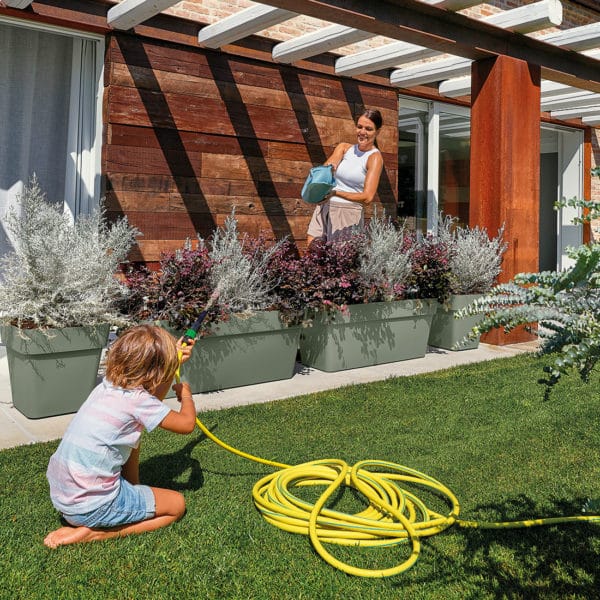 Su elegante color verde bosco aporta un toque natural y sofisticado, integrándose perfectamente en entornos clásicos o contemporáneos. Fabricada con material plástico resistente de alta calidad, esta jardinera soporta la exposición prolongada al sol, la humedad y las variaciones de temperatura, conservando su forma y color con el paso del tiempo.