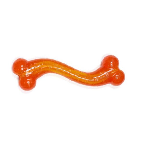 Este hueso de juguete no solo satisface el instinto natural de masticar de tu perro, sino que ayuda a limpiar los dientes, fortalecer la mandíbula y reducir el estrés. Su diseño ergonómico facilita el agarre, y sus colores vibrantes (rosa o naranja) lo hacen fácil de localizar en casa o en exteriores.