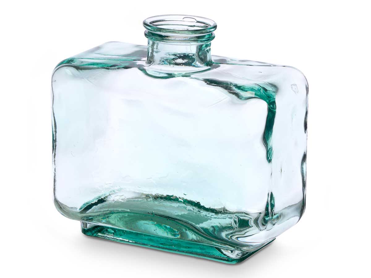 Producto: Jarrón rectangular de vidrio reciclado.