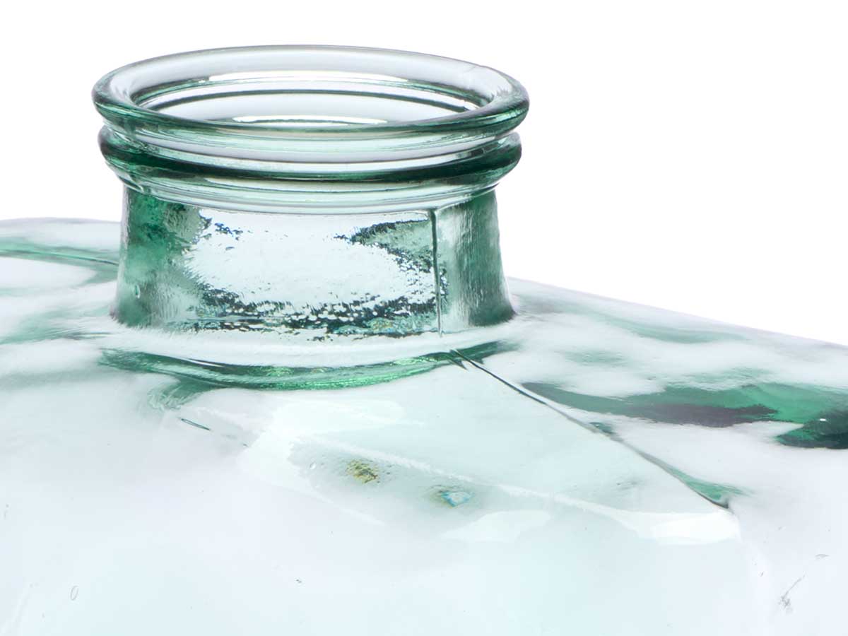 Con unas dimensiones de 15 x 28 x 27 cm, ofrece una excelente capacidad y estabilidad, convirtiéndose en un centro de mesa decorativo perfecto para salones, comedores, oficinas o recibidores. Cada pieza presenta pequeñas variaciones en textura y tono, reflejo del proceso artesanal del vidrio reciclado, lo que la hace aún más especial.
