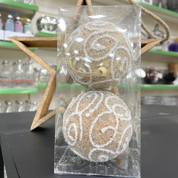 Set 2 bolas navidad 10 cm natural con diseño de rayas.