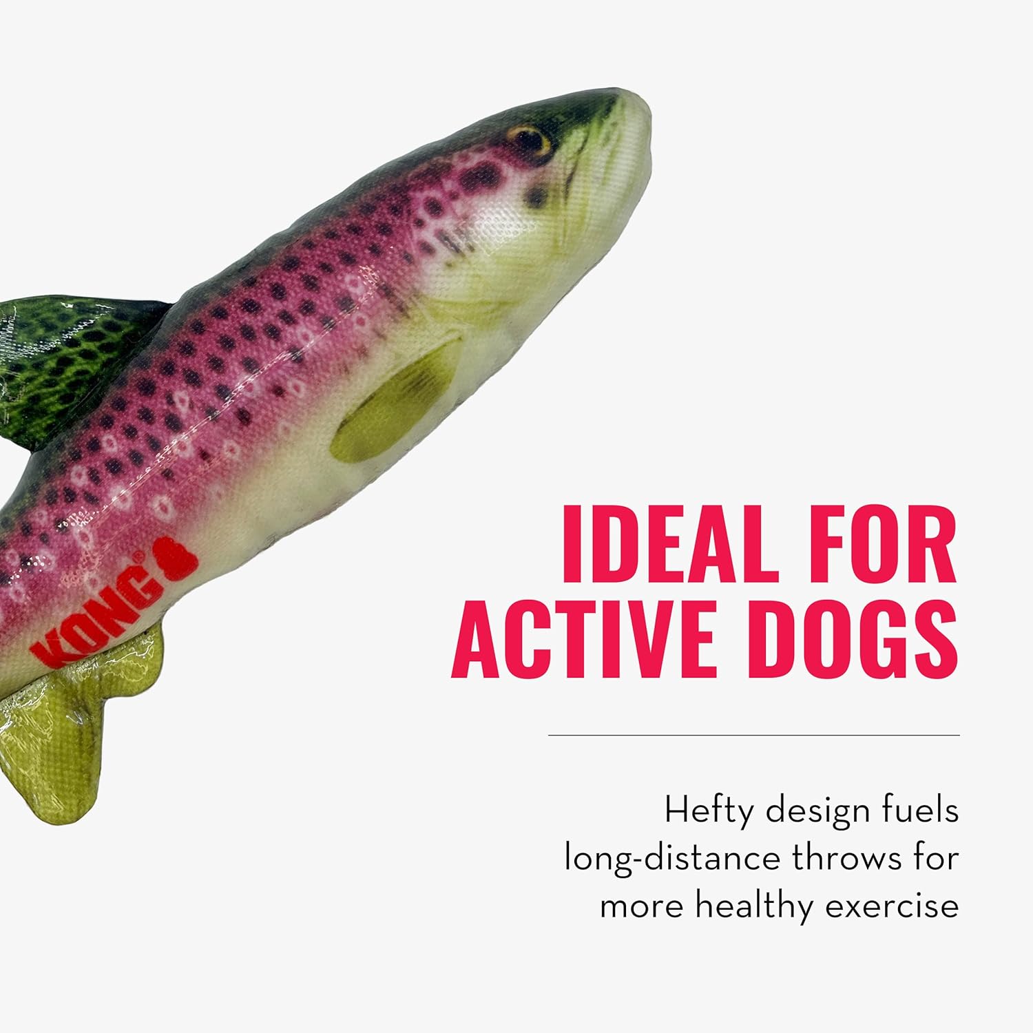 KONG Wild Shieldz Perch M – Juguete para perros con forma de pez, resistente, flotante y con sonido