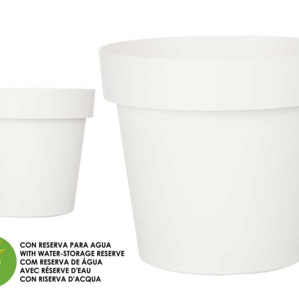 Maceta de plástico blanca con reserva de agua, 35cm.