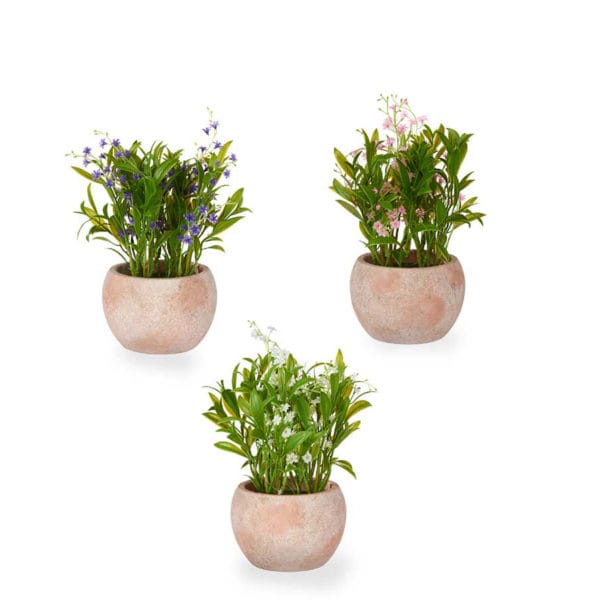 La maceta de terracota ancha con flores lila es la elección perfecta para quienes buscan un adorno floral duradero y funcional que mantenga siempre un aspecto fresco y decorativo.
